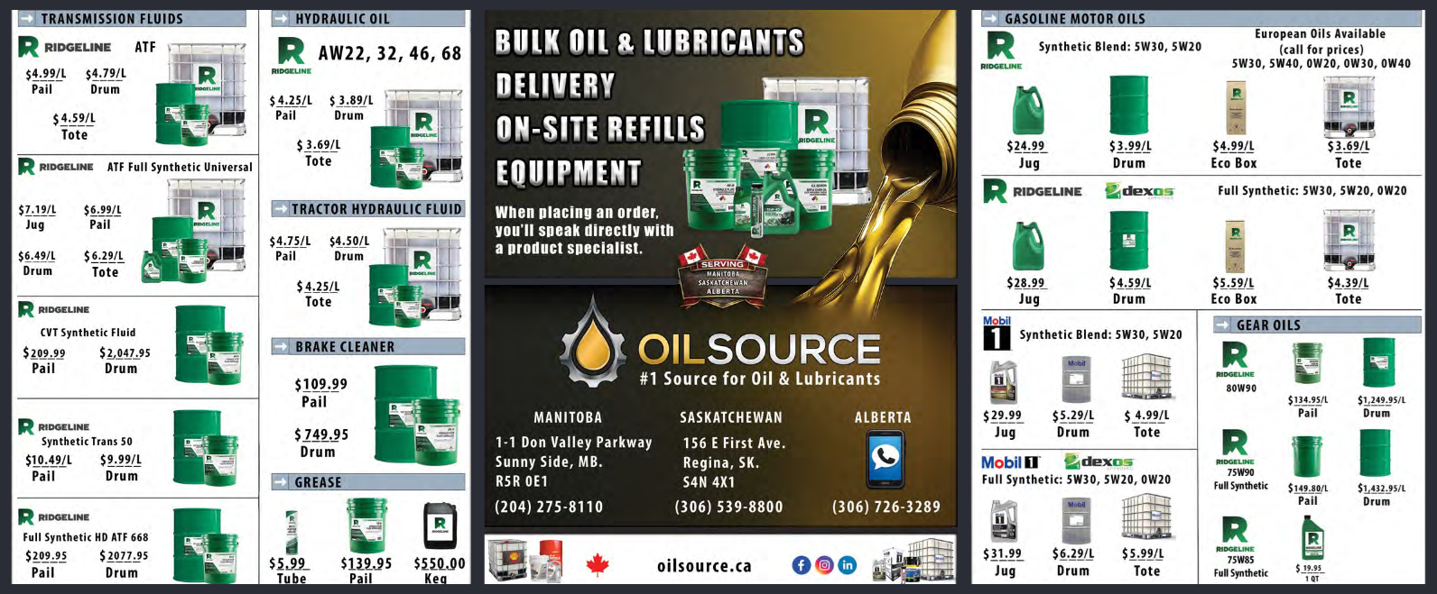 Oil Source is a distributor of premium oil. We have a steady supply of oil and lubricants for the automotive, heavy duty, trucking, and agricultural industries. Whatever oil and fluid specification your vehicle’s manufacturer recommends, we have a product that will cover it.
